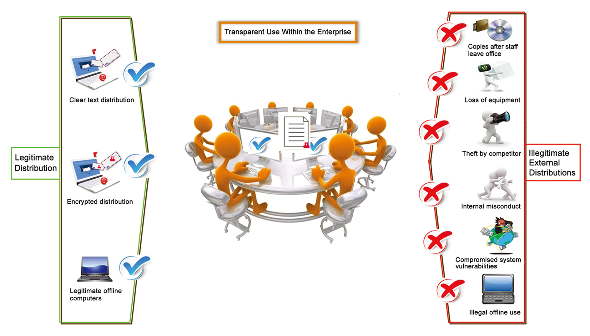 Agile Document Guard (Document Guard ®) software product uses advanced operating system kernel technology, high strength encryption algorithms and flexible easy to use security policies. It efficiently solves the problems of both intentional and unintentional information leaks related to legitimate users inside the enterprise.